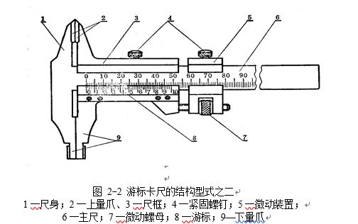 (2)測量范圍為0~200mm和0~300mm的游標卡尺,可制成帶有內外測量面的下量爪和帶有刀口形的上量爪的型式,如圖2―2。