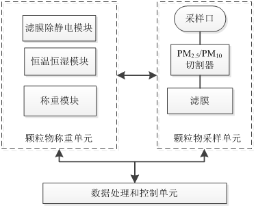 儀器的工作原理為:空白濾膜處于恒溫恒濕環(huán)境下恒重并稱取初始質(zhì)量之后,自動(dòng)安裝在采樣濾膜支架上,由顆粒物采樣單元以恒定的流量抽取環(huán)境空氣樣品,并進(jìn)行切割分離和濾膜收集,采樣后的濾膜進(jìn)入顆粒物稱重單元,經(jīng)恒溫恒濕環(huán)境下恒重和除靜電后進(jìn)行稱重測(cè)量。數(shù)據(jù)處理和控制單元控制整個(gè)測(cè)量過程、參數(shù)采集和測(cè)量結(jié)果的分析、計(jì)算和顯示。