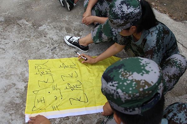 初秋天朗,驕陽(yáng)未消。在拓展任務(wù)開(kāi)始之前,教官將我們分成4支隊(duì)伍后,各隊(duì)討論推選出隊(duì)長(zhǎng),并設(shè)計(jì)隊(duì)名、隊(duì)旗、隊(duì)歌和展現(xiàn)各隊(duì)別具特色的口號(hào)。全部完成后,為期兩天的團(tuán)隊(duì)之旅、挑戰(zhàn)之旅、感恩之旅正式開(kāi)始。