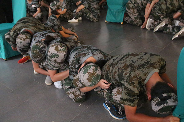 眾志成城”。所有隊(duì)員在最短的時(shí)間內(nèi)完成任務(wù),同時(shí)坐下,同時(shí)起立。