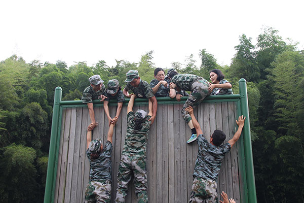 畢業(yè)墻”。所有隊(duì)員在團(tuán)隊(duì)協(xié)作攀登4.27米的高墻。